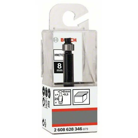 Beschreibung: Bosch Accessories 2608628346 Bündigfräser Hartmetall Länge 68 mm Produktabmessung, Ø 9.5 mm Schaftdurchmesser 8 mm
