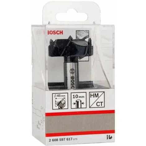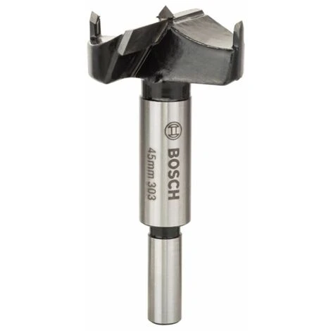 Kunstbohrer. hartmetallbestückt. Durchmesser: 45 mm. Gesamtlänge: 90 mm. Schaftdurchmesser: 10 mm. Geeignet für abrasive Materialien wie Leim- und Hartholz. Spanplatten. Holzfaserplatten. kunststoffbeschichtetes Holz. Ideal für den Einsatz bei Schreinern und Tischlern. speziell im Fenster-. Türen- und Küchenbau.