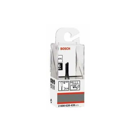 Bosch Nutfräser, 6 mm, D1 4,8 mm, L 12,4 mm, G 51 mm | Eigenschaften: Durchmesser: 4,8 mm, Gesamtlänge: 51 mm, Schaftdurchmesser: 6 mm, Arbeitslänge: 12,4 mm