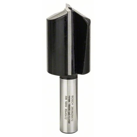 Nutfräser mit Überlänge, zweischneidig, Hartmetall, Schaft: 12 mm, Durchmesser: 30 mm, Arbeitslänge: 40 mm, Gesamtlänge: 81 mm, zum universellen Fräsen, Nuten oder Falzen mit Oberfräsen, zum Formatieren von regelmäßigen oder geschweiften Werkstücken, geeignet für Massivholz, Plattenwerkstoffe wie Span- oder MDF-Platte, Kunststoffe oder abrasive Materialien wie Corian, größere Arbeitslänge für höhere Flexibilität in der Anwendung