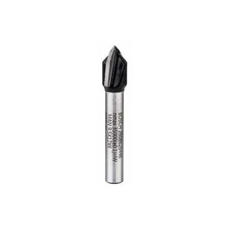 Bosch V-Nutfräser, 6 mm, D1 9,5 mm, L 12,35 mm, G 45 mm, 90° | Eigenschaften: Gesamtlänge: 45 mm, Durchmesser: 9,5 mm, Arbeitslänge: 12,4 mm, Schaftdurchmesser: 6 mm