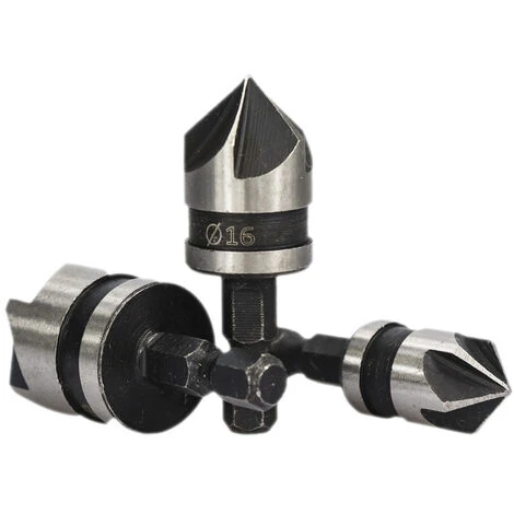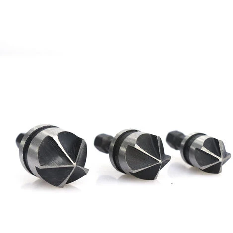 3 Stück 90 Grad Fasenschneider, 5 Flöten Fasenschneider HSS Kegelschneider 1/4 Sechskant Walnussschneider Holz Fasenschneider 12/16 / 19mm