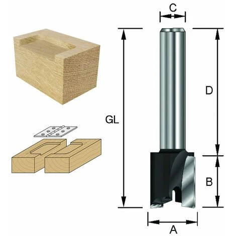 Umfang- und stirnschneidig. Eignet sich besonders zum Einfräsen von großflächigen Scharnieren. Zum Planfräsen von Holz- oder Kunststoffumleimern.