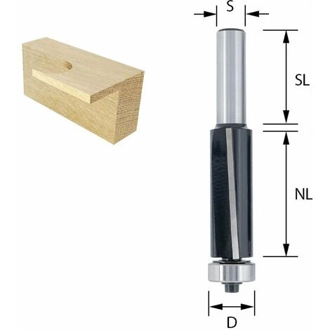 Flankenschneidender Bündigfräser mit zwei eingelöteten Hartmetall-Schneiden (HW) und austauschbarem Kugellager an der Stirn. Zum Planfräsen von Kanten, zum Anpassen überstehender Furniere und für den Einsatz mit Schablonen geeignet. Durch den negativen Achswinkel der HW-Platten entsteht ein ziehender Schnitt. Dadurch wird ein sehr sauberes Ergebnis an der Schnittkante erzielt. Vorteil bei beschichteten Platten und Kunststoffen aber auch bei langfaserigen Hölzern (Stirnholzbearbeitung). Das austauschbare Kugellager (Art.-Nr. 00107) an der Stirn sorgt für präzise Führung entlang des Werkstücks. Dieser Fräser ist für Weichholz, Hartholz und beschichtete Platten geeignet. Passt in Handoberfräsen und Tischoberfräsen mit 12 mm Spannzange.