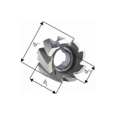 Forum Walzenstirnfräser, HSS Co5, Typ NF, 25°Geeignet als Plan-, Eck- und Walzenfräser.Schruppschlichtverzahnt. Stirn- und umfangsseitig schneidend, PROFILhinterschliffen. | Eigenschaften: Bohrung d2 H7: 16 mm, Ø x Breite d1 + js 14 x b1 k 16: 40 x 32 mm, Zähnezahl: 7, Bohrungs-Ø: 16 mm, Durchmesser x Breite: 40 x 32 mm, Schnittwert Stahl<850 N/mm²: 25 m/min, Schnittwert Stahl<1000 N/mm²: 20 m/min, Emulsion: empfohlen, Bohrungsdurchmesser: 16 mm, Ø x Breite: 40 x 32