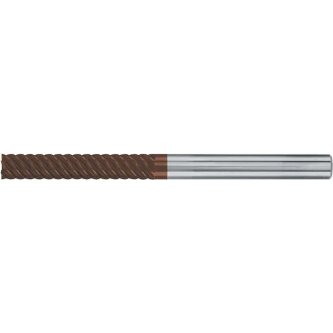 VHM-Schaftfr�ser Ausf�hrung: Mit Zentrumschnitt, zum Bohren geeignet. Anwendung: Einsetzbar zum Umfangsfr�sen, Bes�umen und Feinstschlichten. Optimal im Formenbau verwendbar. Durch die extrem hohe Drallsteigung sowie den verst�rkten Kern entstehen ein besonders ruhiger Lauf und somit eine geringe Formabweichung sowie eine sehr gute Oberfl�che am Werkst�ck. F�r die HSC-Bearbeitung bis 56 HRC geeignet.