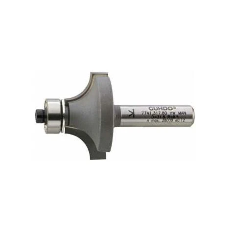 HW-Abrundfräser Z2, Anlauflager auswechselbar | Eigenschaften: Anlaufkugellager: Ja, Anzahl Schneiden: 2, Gesamtlänge: 61, Material: HW-bestückt, Arbeitslänge: 19,1, Ø: 38,1 mm, Prüfzeichen: Nein, Radius: 12,7, Schaft-Aufnahme: Zylindrisch, Schaft-Ø: 8 mm, Anlauflagerstärke: 5 mm, Anlauflager-Ø: 12,7 mm, Anlauflagerbohrung: 4,76 mm, Schaftdurchmesser: 8, Durchmesser: 38,1