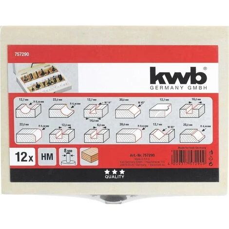 Beschreibung: kwb 757290 Frässet Schaftdurchmesser 8 mm 12teilig