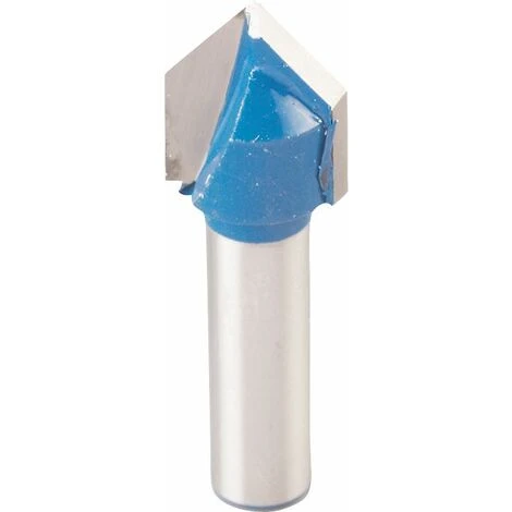 V-Nutfräser, hartmetallbestückt, 2-schneidig, Schneiden präzisionsgeschliffen, zum Fräsen von V-Nuten, dekorativen Ziernuten und Strukturierung von Oberflächen und zum Einsatz in Kopierfräsmaschinen, der Fräser fräst nicht bis ganz in die Spitze, es bleibt ca. 1 mm abgeflacht, für Hart- und Weichholz sowie Plattenwerkstoffen, für alle handelsüblichen handgeführten Oberfräser-Maschinen.