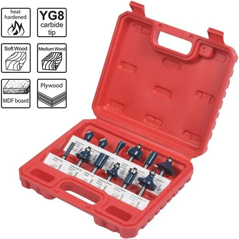 【6,35 mm GRIFFDURCHMESSER】: Alle Bits haben einen präzisionsgeschliffenen Schaftdurchmesser von 6,35 mm, der für alle 6,35 mm Fräsmaschinen geeignet ist Hochwertige Hartmetallklingen für die professionelle Holzbearbeitung.