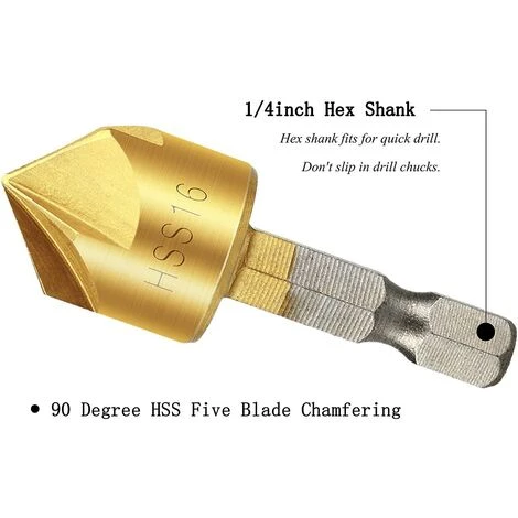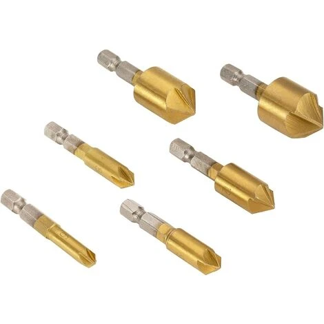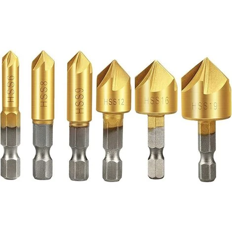 6PCS 5 Flöten-Senkerbohrer-Set 90 ° Senk-Fasenschneider 1/4 Schaftsechskant 6 mm-19 mm.