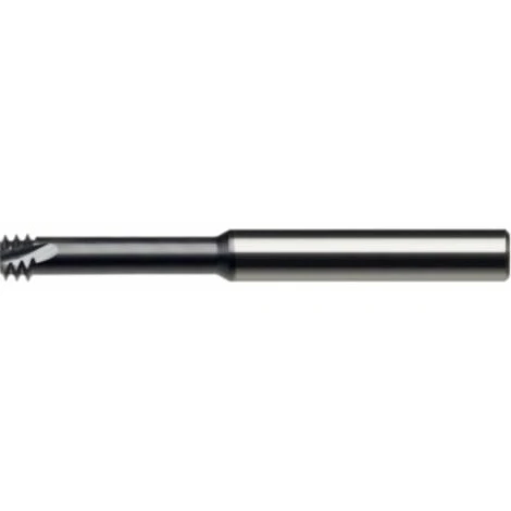 Gewindefräser VHM-TIAlN 3xD für den universellen Einsatz bis 1500 N/mm2 im Innengewinde • Ausführung: Gewindefräser mit kurzem Gewindeteil • Vorteil: innovative Schneidengeometrie sorgt für sehr hohe Maßhaltigkeit. Prozesssicherheit und SpanabfuhrGewindefräsen sehr kleiner Gewinde ab M1.4 x 0.3 möglich