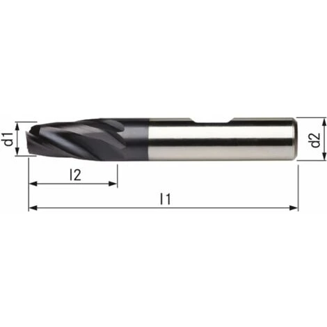 Schaftfräser HSSE Co 8 2 Schneiden. TiAlN – beschichtet • Anwendung: Geeignet zum universellen Tauch-. Nut- und Passungsfräsen. • Ausführung: HSSE Co 8SchlichtzahnungZentrumschnittTiAlN-Beschichtung für höchste Standzeitkurze Ausführung