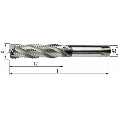 Schruppfräser HSSE Co 5 4 Schneiden. unbeschichtet • Anwendung: Schaftfräser zur universellen Bearbeitung in verschiedensten Werkstoffen. • Ausführung: HSSE Co 5ZentrumschnittZylinderschaft nach DIN 1835 DTyp NRSchruppzahnung