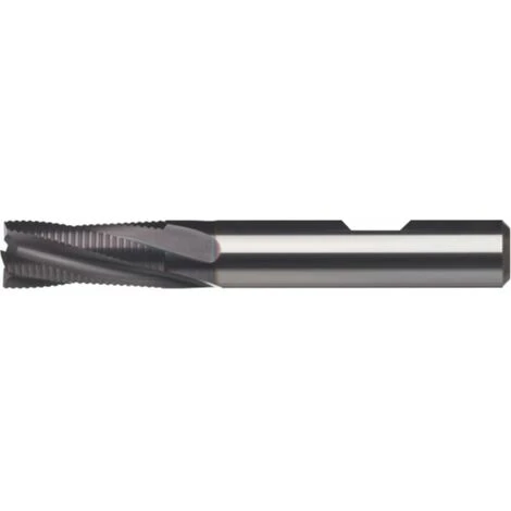 VHM Schruppfräser 4 Schneiden. TiAlN – beschichtet • Anwendung: Zum universellen Schruppfräsen mit höchsten Zerspanleistungen. • Ausführung: VHM-FeinstkornZylinderschaft nach DIN 6535 HBTiAIN-beschichtetZentrumschnittmit Kantenschutzfasefeine Rillenteilunglange Ausführung