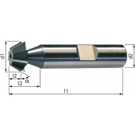 Winkelfräser HSSE Co 5 • Anwendung: Zum Fräsen von Führungen und anderer Winkelgeometrien im Werkzeug- und Maschinenbau. • Ausführung: geradegenutetfeinverzahntZylinderschaft nach DIN 1835 B.am Umfang schneidend