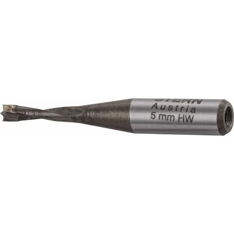 - Spezialbohrer für Dübelbohrautomaten für Sacklöcher mit Zentrierspitze, 2 Vorschneidern und 2 Hauptschneiden für sauberen Lochrand an der Werkstückoberfläche.